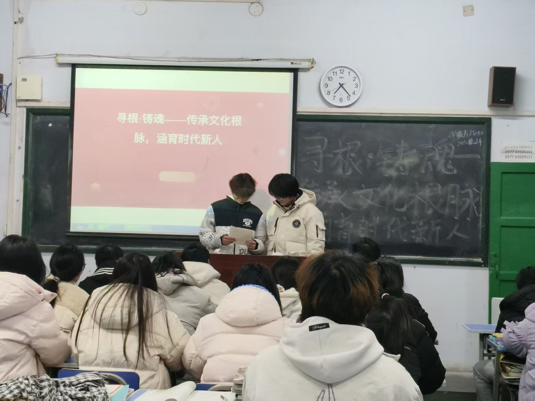 为落实立德树人根本任务,传承中华优秀传统文化与仲景医药文化精髓,12月24日晚,五年制高职部组织开展“寻根·铸魂——传承文化根脉,涵养时代新人”主题班会。班会以沉浸式体验与深度交流相结合的形式,让同学们在文化浸润中厚植家国情怀,在思想碰撞中明确使命担当。