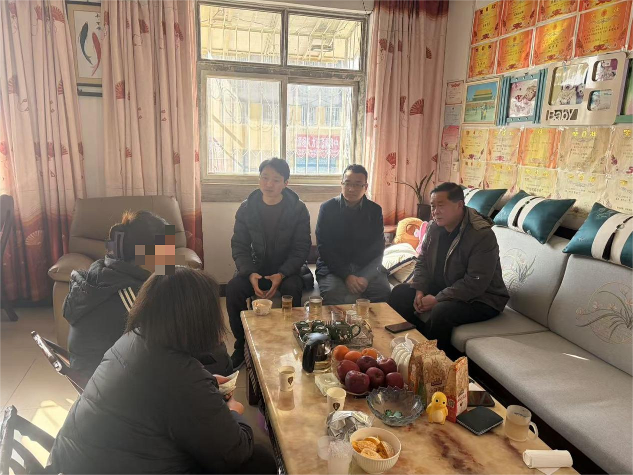 1月12日,走访团队首先来到南阳市宛城区一名23级学生家中。通过班主任前期细致摸排了解到,该生本学期家中突发重大变故,目前正处于心理调适与家庭经济过渡的关键时期。走访中,王伦书记一行与学生及家长促膝长谈,耐心倾听家庭面临的困难与诉求,细致询问学生的心理状态和学习生活情况。老师们一方面积极开展心理疏导,鼓励学生和家长树立信心、共渡难关;另一方面详细解读学校的资助政策,告知将根据家庭实际情况制定个性化帮扶方案,为学生的学习生活保驾护航,让家长和学生深切感受到学校的关怀与支持。