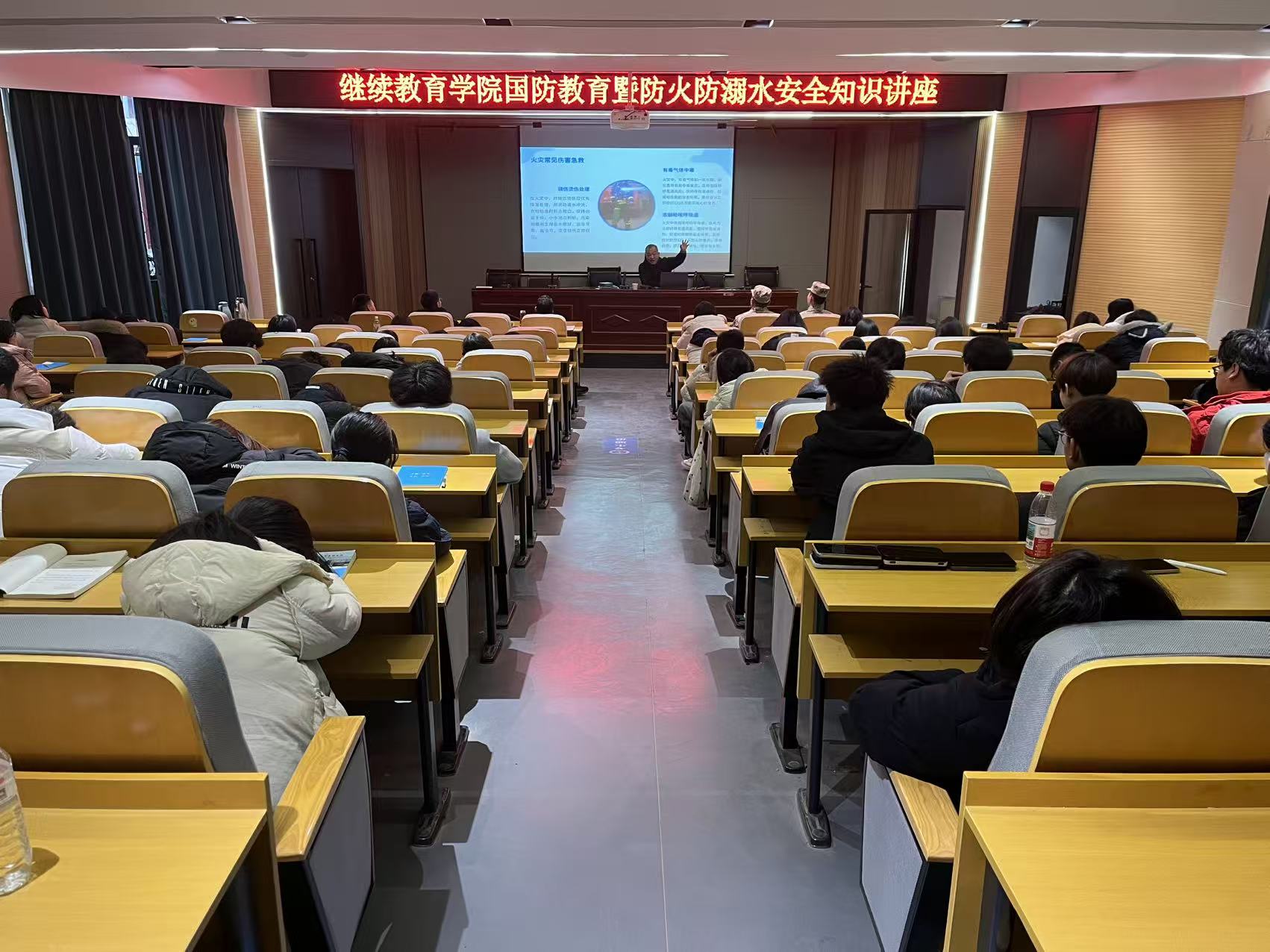 12月24日,长津湖战役胜利纪念日当天,五年制高职部邀请南阳市卧龙区退役军人学雷锋志愿服务大队为百名师生开展国防教育宣讲暨安全知识讲座,打造“思政铸魂+安全筑基”双融合课堂。
